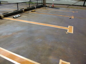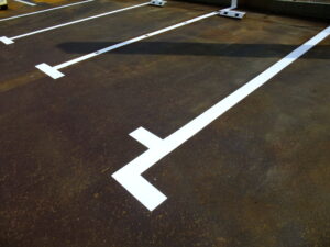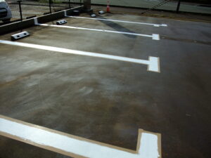 本日のお写真は、毎年恒例の駐車場のライン引きをしました。