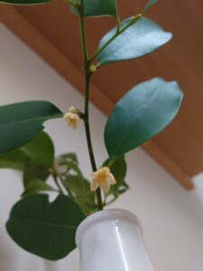本日のお写真は、先日水の入れ替えをと思ったらなんと榊に花が!!!
