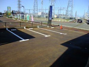 平日の夜に毎年恒例の駐車場のライン引きをしました。